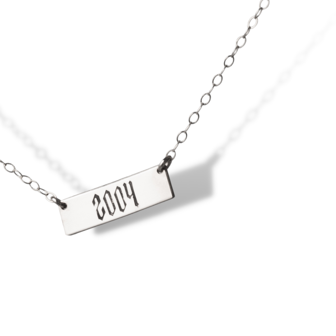 Sterling Silver Birth Year Necklace: The birth year necklace in sterling silver is a perfectly classic option for every day wear. Make sure to polish this sterling birth year necklace every once and a while to maintain optimal shine.