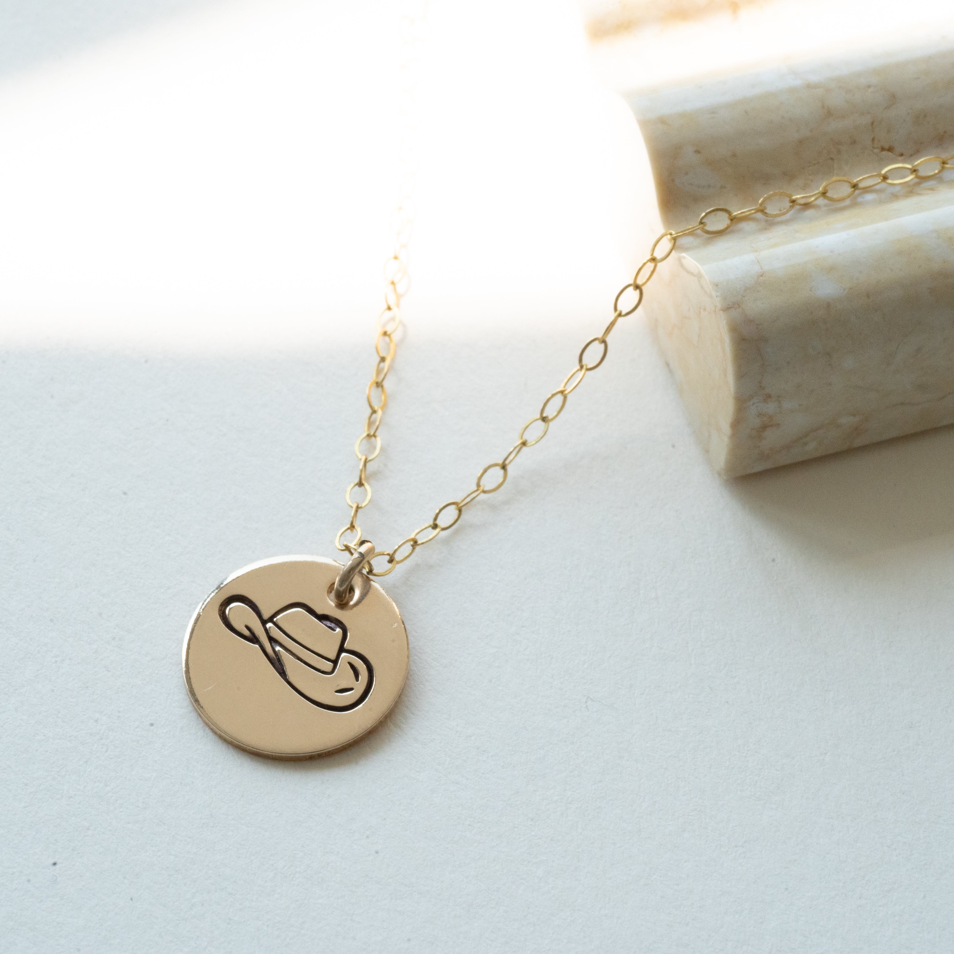 Well howdy there! We designed this cowboy hat necklace for any and all that are strongly resonating with those western vibes. This cowboy hat necklace is the perfect piece to wear every day, or when you're feeling a little fancy. Our cowboy hat necklaces come in Sterling Silver or Gold Fill.