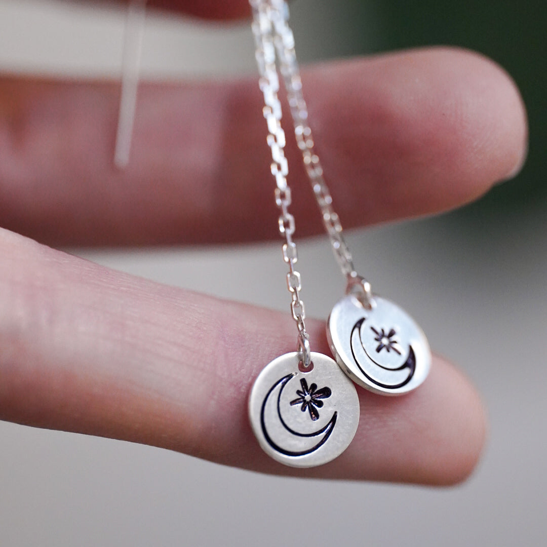 Easy to put in, but won't fall out, these ear threaders are perfect for elevating any outfit. These celestial moon earrings are available in both Sterling Silver and Gold Fill.