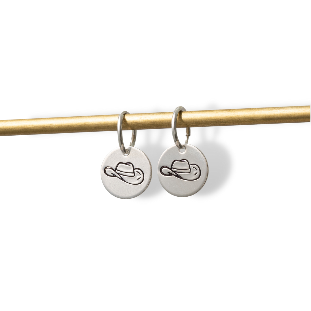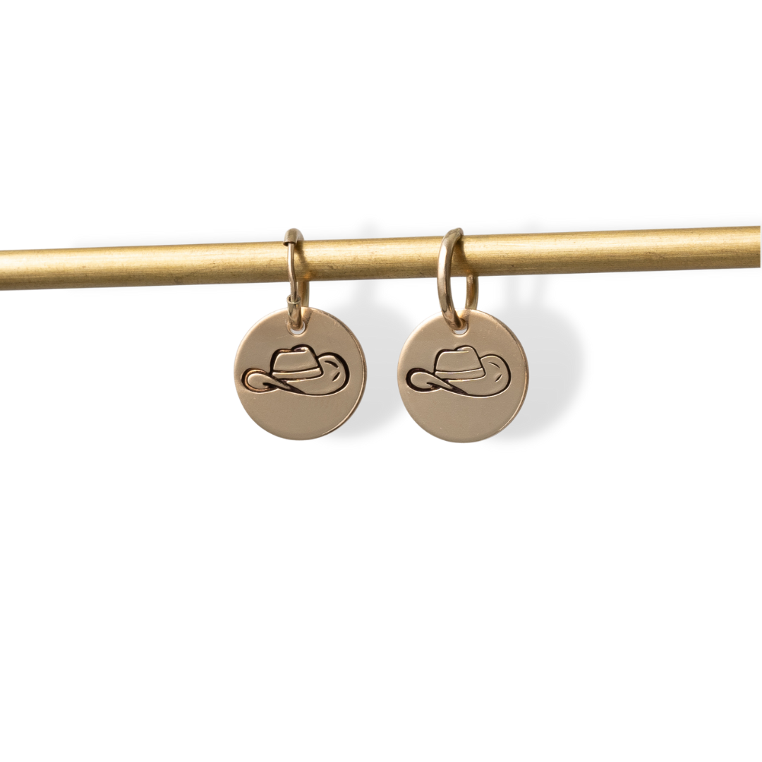 What's better than a beautiful cowboy hat? Two cowboy hats! These western-style cowboy hat earrings are great for every day wear, or for the fanciest of affairs. Our cowboy hat hoop earrings are available in Sterling Silver or Gold Fill.