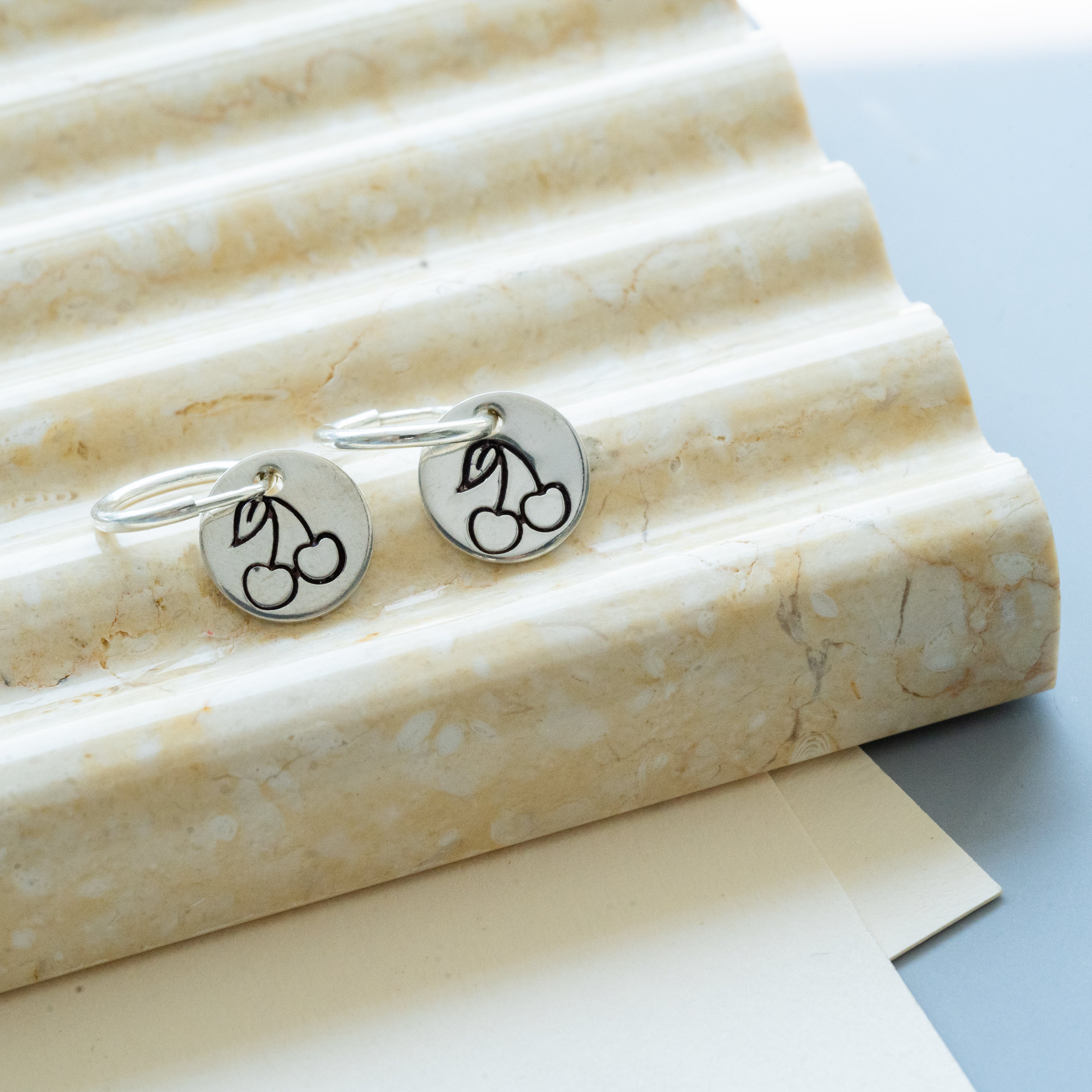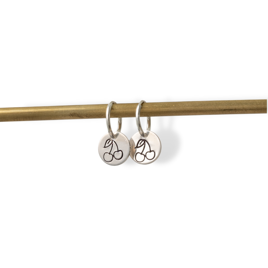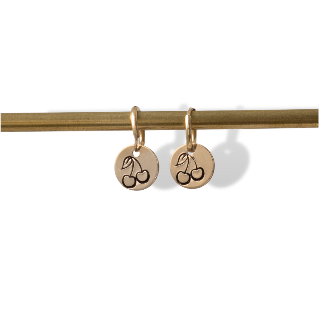 How sweet are these tiny cherry earrings? Sweet enough to never take them off! Our cherry hoop earrings are the perfect earrings to add a beautiful touch to your favourite 90's outfit. Our cherry earrings are available in Sterling Silver and Gold Fill.